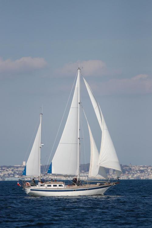 Name of Yacht: GOESTING Photo 1 - Photo 2... | Declared dimensions : Lenght Over All (LH) = 13.41 m Length on the Water Line (LWL) = 10.00 m Max width (BH) = 3.99 m Draft (TE) = 1.85 m Displacement factor (FD) = 14.277 | Correction factor calculation Type of rig : bermudian ketch = 0.98 Hull: classic 2 C2 = -0.03 Kref = 0.179 C2a = 0.012 Performance group : Performance class 3 = 0 Vintage bonus (build): 1985 = 0.051 Vintage bonus (design): 1976 = 0.038 Cumulative vintage bonus: 0.089 Hull material : other = 0.05 Mast material : wood/aluminium/steel = 0 Boom material : wood/aluminium/steel = 0 Mast or boom total penality (D.2.1.3.6) : 0 Year of mast change : 2017 = 0.017 Year of spar change : 2017 = 0.008 Sails material : type 2 = 0 Propeller type : tripale = -0.08 Winches ? : with = 0 Correction factor (C)= 1.038 | BERMUDIANS Max foresail area: 0 m² Genoa HLU = 15.00 ; HLP = 0.00 BERMUDIANS Main total area: 56.05 m² Mainsail P = 15.89 ; E = 4.75 Mizzen or Jigger sail P = 8.00 ; E = 2.75 No downwindsail |