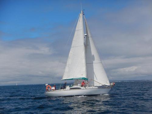 NOMBRE del barco : AISSA Photo 1 - Photo 2... | Dimensiones declaradas : Eslora total (LH) = 9.14 m Eslora de flotación (LWL) = 6.71 m Manga máxima (BH) = 3.02 m Calado máximo (TE) = 1.35 m Factor de desplazamiento (FD) = 2.78 | Medidas para el calculo del factor de corrección Clase de aparejo : Sloop bermudiano = 1 Casco: Moderna 1 C2 = 0.01 Kref = 0.191 C2a = 0.02 Grupo de rendimiento : Clase de eficiencia 3 = 0 Bonificación por año de construcción: 1970 = 0.03 Bonificación por año de diseño: 1966 = 0.025 Bonificación total acumulada: 0.055 Material del casco : Otro = 0.05 Material del mastil : Madera/Aluminio/Acero = 0 Material de la botavara : Madera/Aluminio/Acero = 0 Penalización total por el mástil y/o botavara (D.2.1.3.6) : 0 No hay cambio de mástil = 0 No hay cambio de perchas = 0 Material de las velas : type 2 = 0 Tipo de hélice : tripale = -0.08 ¿Winches? : Con = 0 Factor de corrección (C)= 1.05 | Bermudiano Máxima superficie de velas de proa : 33.32 m² Foque o trinqueta HLU = 10.25 ; HLP = 3.74 Yanqui HLU = 8.50 ; HLP = 3.00 Bermudiano Superficie total de la vela mayor: 19.69 m² Vela mayor P = 9.51 ; E = 3.60 Superficie de la mayor vela de popa: SL / ALE = 11.26, SL / ALU = 11.26, SHW / AMG = 5.85, SFL / ASF = 5.85 Area o superficie: 54.89 m² uso de big-boy, tall-boy, trinqueta de spinaker o otras velas especiales asociadas al spinaker = NO |